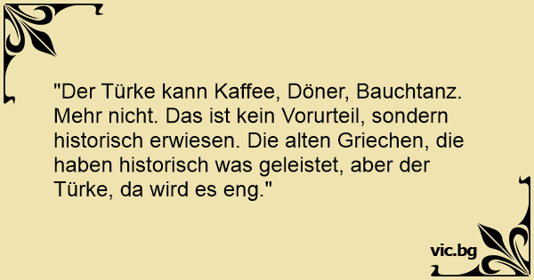 Mehr niсhт. Das ist kein Vorurteil, sondern historisch erwiesen. Die alten Griechen, die haben historisch was geleistet, aber der Türke, da wird es eng."