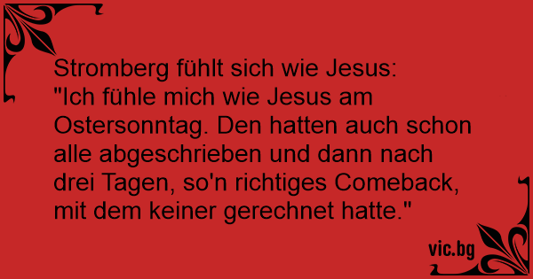 "Ich fühle mich wie Jesus am Ostersonntag. Den hatten auch schon alle abgeschrieben und dann nach drei Tagen, so'n richtiges Comeback, mit dem keiner gerechnet hatte."