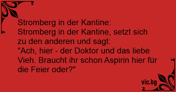 "Ach, hier - der Doktor und das liebe Vieh. Braucht ihr schon Aspirin hier für die Feier oder?"