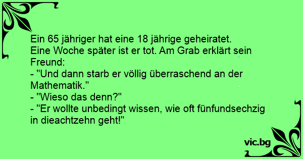 - "Er wollte unbedingt wissen, wie oft fünfundsechzig in dieachtzehn geht!"
