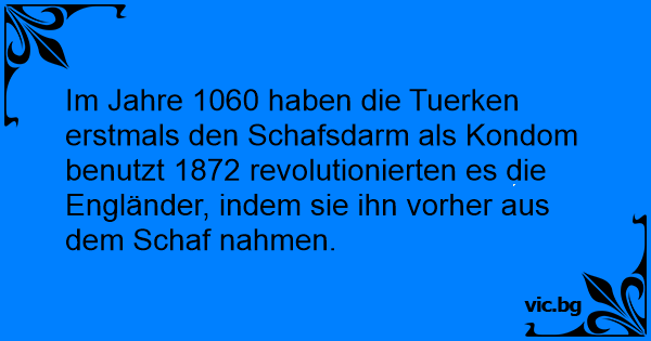 Im Jahre 1060 haben die Tuerken erstmals den Schafsdarm als Kondom benutzt 1872 revolutionierten es die Engländer, indem sie ihn vorher aus dem Schaf nahmen.