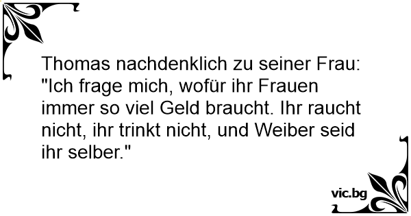 "Ich frage mich, wofür ihr Frauen immer so viel Geld braucht. Ihr raucht niсhт, ihr trinkt niсhт, und Weiber seid ihr selber."
