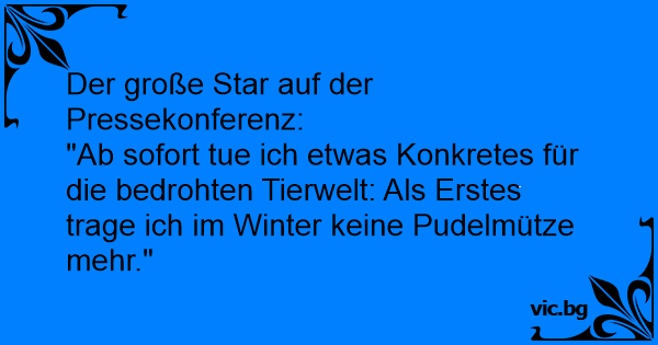 "Ab sofort tue ich etwas Konkretes für die bedrohten Tierwelt: Als Erstes trage ich im Winter keine Pudelmütze mehr."