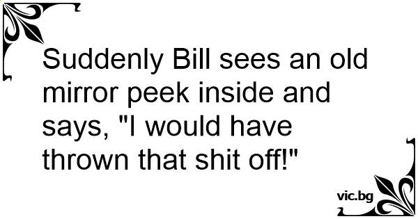 Suddenly Bill sees an old mirror peek inside and says, "I would have thrown that shiт off!"