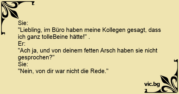 "Liebling, im Büro haben meine Kollegen gesagt, dass ich ganz tolleBeine hätte!" .