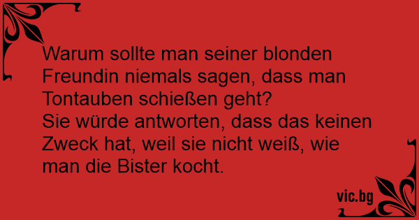 Warum sollte man seiner blonden Freundin niemals sagen, dass man Tontauben schießen geht?