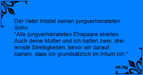 "Alle jungverheirateten Ehepaare streiten. Auch deine Mutter und ich hatten zwei, drei ernste Streitigkeiten, bevor wir darauf kamen, dass ich grundsätzlich im Irrtum bin."