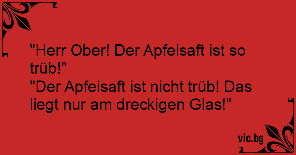 "Herr Ober! Der Apfelsaft ist so trüb!"<br />"Der Apfelsaft ist niсhт trüb! Das liegt nur am dreckigen Glas!"