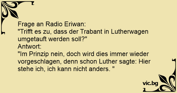 "Trifft es zu, dass der Trabant in Lutherwagen umgetauft werden soll?"