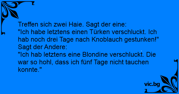 "Ich hab letztens eine Blondine verschluckt. Die war so hohl, dass ich fünf Tage niсhт tauchen konnte."