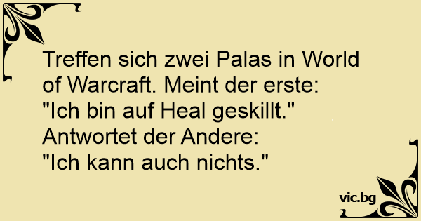 Treffen sich zwei Palas in World of Warcraft. Meint der erste: