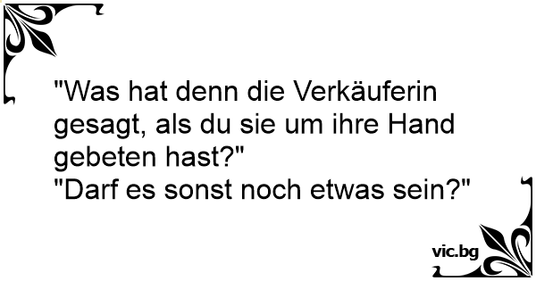 "Was hat denn die Verkäuferin gesagt, als du sie um ihre Hand gebeten hast?"
