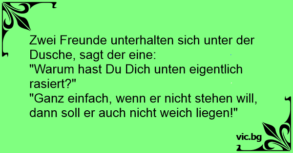 Zwei Freunde unterhalten sich unter der Dusche, sagt der eine: