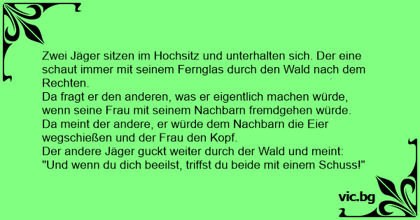 Da meint der andere, er würde dem Nachbarn die Eier wegschießen und der Frau den Kopf.