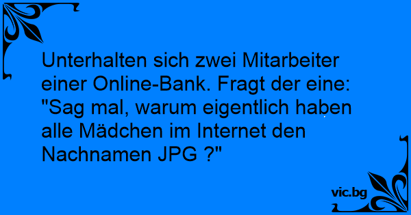 "Sag mal, warum eigentlich haben alle Mädchen im Internet den Nachnamen JPG ?"