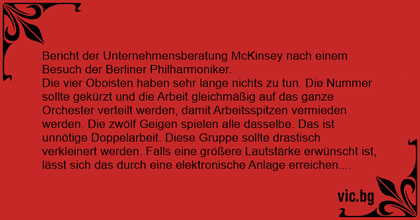 Bericht der Unternehmensberatung McKinsey nach einem Besuch der Berliner Philharmoniker.