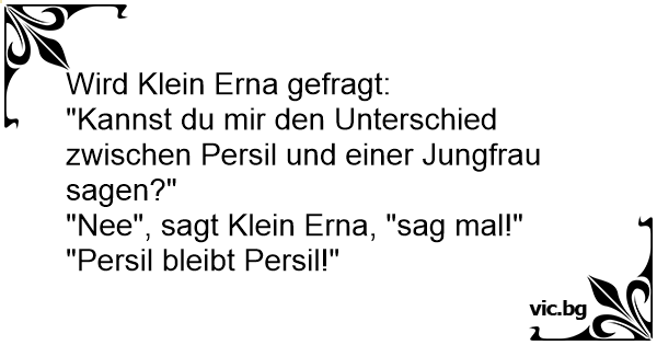 "Kannst du mir den Unterschied zwischen Persil und einer Jungfrau sagen?"