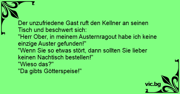 "Herr Ober, in meinem Austernragout habe ich keine einzige Auster gefunden!"