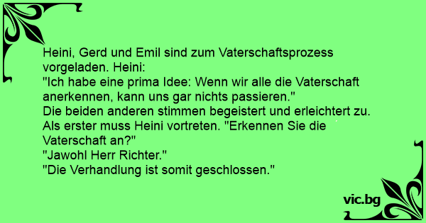 Heini, Gerd und Emil sind zum Vaterschaftsprozess vorgeladen. Heini: