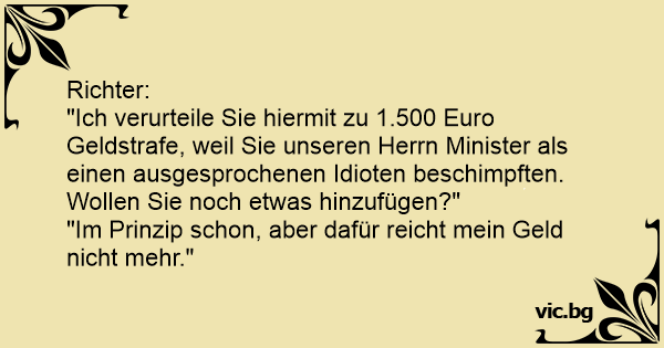 "Ich verurteile Sie hiermit zu 1.500 Euro Geldstrafe, weil Sie unseren Herrn Minister als einen ausgesprochenen Idioten beschimpften. Wollen Sie noch etwas hinzufügen?"