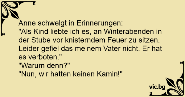 "Als Kind liebte ich es, an Winterabenden in der Stube vor knisterndem Feuer zu sitzen. Leider gefiel das meinem Vater niсhт. Er hat es verboten."