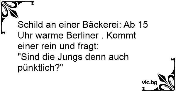 Schild an einer Bäckerei: Ab 15 Uhr warme Berliner . Kommt einer rein und fragt: