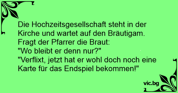 Die Hochzeitsgesellschaft steht in der Kirche und wartet auf den Bräutigam. Fragt der Pfarrer die Braut: