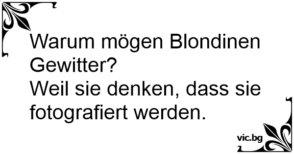 Blondes in a Lightning Storm Smile If You're Blonde Los gallegos y los relámpagos Ξανθιές Φωτογραφία. Защо блондинките се усмихват като има буря? Въпрос: Was macht eine Blondine wenn es blitzt? Sie steigt auf’s Dach und macht Posen weil sie denkt, dass sie fotografiert wird. Perché durante i temporali i carabinieri sorridono? Warum gehen Burgenländer auf das Dach wenn es blitzt? Damit sie auch aufs Photo kommen! Pourquoi les blondes sourient toujours lors d'un orage électrique? Elles pensent que quelqu'un les prend en photo. Idą dwie blondynki przez burzę. Pierwsza pyta się drugiej: - Co robisz? - Uśmiecham się. - A po co? - By dobrze wypaść na zdjęciu. Vet ni varför norrmän tittar upp i himlen när det åskar? - För att de tror att de blir fotograferade. Pourquoi les blondes se mettent tout le temps devant la fenêtre lors d'un orage ? Parce qu'elles veulent être sur la photo. ¿Por qué las rubias sonrien cuando cae un rayo? Porque se creen que les están sacando una fotografía. - Vet du hvorfor svenskene ser opp på himmelen og smiler når det lyner? - Nei. - De tror de blir fotograferte. Hvorfor tager århusianerne deres pæne tøj på i tordenvejr? – De tror de skal have taget billeder - Hvorfor tager århusianerne pænt tøj på, når det tordner og lyner? - Fordi de tror, de bliver fotograferet. Immer wenn es blitzt und donnert stehen die Ostfriesen auf ihrem Balkon und schauen freundlich in den Himmel. Warum? Weil sie meinen der Liebe Gott fotografiere sie. Hvorfor smiler blondinene når det lyner og tordner? - De tror det blir tatt bilder av dem.. Why did the blonde keep stopping then smile during a lightning storm? A: She thought she was getting her picture taken. Vraag: Waarom gaat een belg voor het raam staan als het onweert ? Antwoord: Hij denkt dat er een foto wordt gemaakt ! Varför gillar blondiner blixtoväder? Dom tror någon försöker ta kort på dom Dlaczego blondynka uśmiecha się, gdy strzelają pioruny? - Bo myśli, że robią jej zdjęcie. Kodėl blondinė stovi prie lango kai žaibuoja? - Todėl, jog jai atrodo, kad ją fotografuoja. Zinot del ko blondines sipsosi ir stovi prie lango kaip zaibuoja? Jos galvoja kad jas fotografuoja