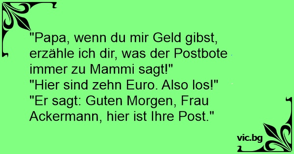 "Papa, wenn du mir Geld gibst, erzähle ich dir, was der Postbote immer zu Mammi sagt!"