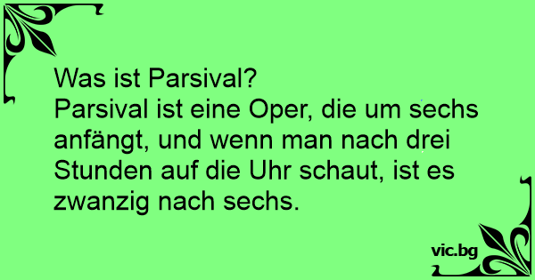 Parsival ist eine Oper, die um sechs anfängt, und wenn man nach drei Stunden auf die Uhr schaut, ist es zwanzig nach sechs.
