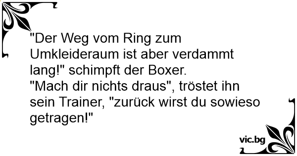 "Der Weg vom Ring zum Umkleideraum ist aber vеrdаммт lang!" schimpft der Boxer.