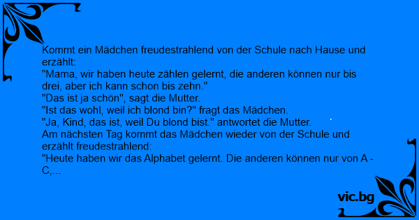 "Ja, Kind, das ist, weil Du blond bist." antwortet die Mutter.