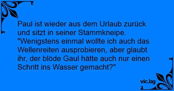 Paul ist wieder aus dem Urlaub zurück und sitzt in seiner Stammkneipe.