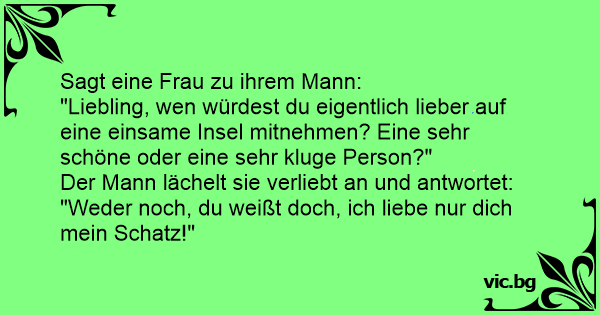 "Liebling, wen würdest du eigentlich lieber auf eine einsame Insel mitnehmen? Eine sehr schöne oder eine sehr kluge Person?"