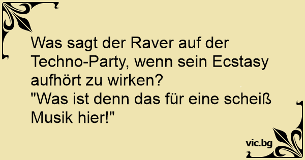 Was sagt der Raver auf der Techno-Party, wenn sein Ecstasy aufhört zu wirken?