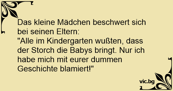 "Alle im Kindergarten wußten, dass der Storch die Babys bringt. Nur ich habe mich mit eurer dummen Geschichte blamiert!"