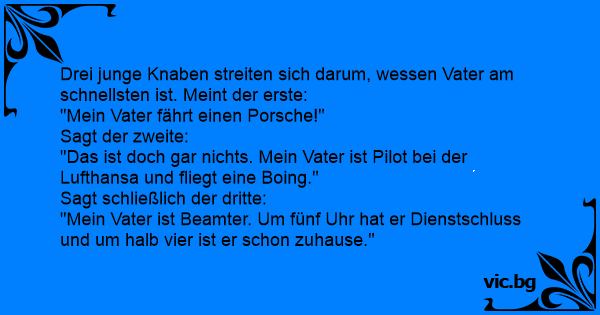 Drei junge Knaben streiten sich darum, wessen Vater am schnellsten ist. Meint der erste:
