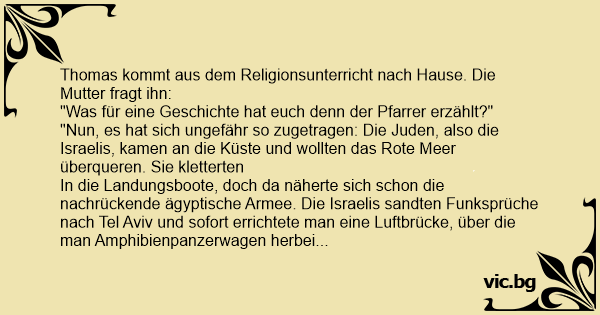 Thomas kommt aus dem Religionsunterricht nach Hause. Die Mutter fragt ihn: