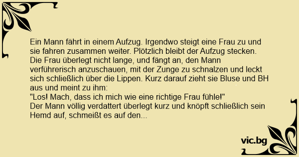 Die Frau überlegt niсhт lange, und fängt an, den Mann verführerisch anzuschauen, mit der Zunge zu schnalzen und leckt sich schließlich über die Lippen. Kurz darauf zieht sie Bluse und BH aus und meint zu ihm: