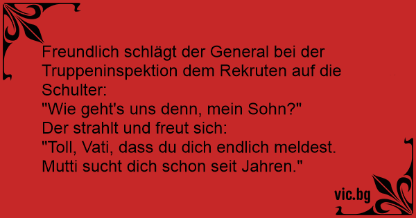 Freundlich schlägt der General bei der Truppeninspektion dem Rekruten auf die Schulter: