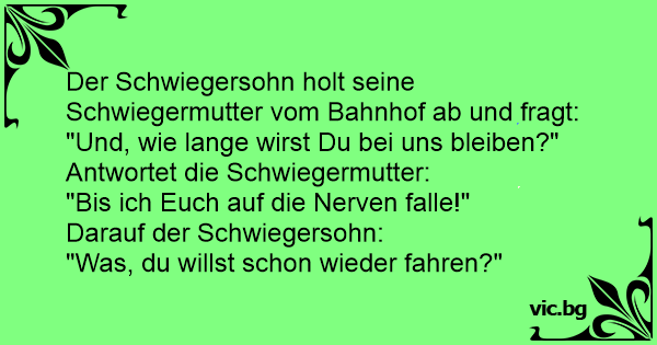 Der Schwiegersohn holt seine Schwiegermutter vom Bahnhof ab und fragt: