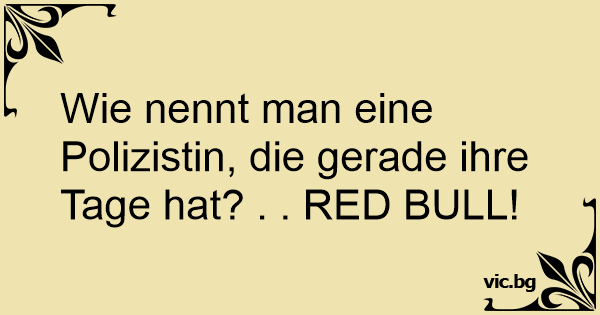 Wie nennt man eine Polizistin, die gerade ihre Tage hat? . . RED BULL!