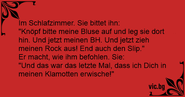 "Knöpf bitte meine Bluse auf und leg sie dort hin. Und jetzt meinen BH. Und jetzt zieh meinen Rock aus! End auch den Slip."