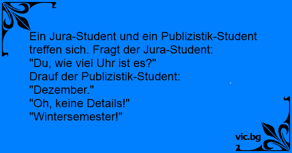 Ein Jura-Student und ein Publizistik-Student treffen sich. Fragt der Jura-Student: