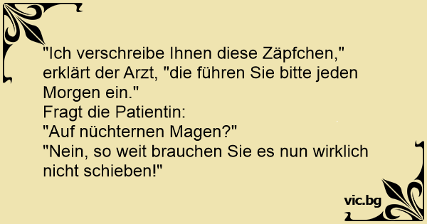 "Ich verschreibe Ihnen diese Zäpfchen," erklärt der Arzt, "die führen Sie bitte jeden Morgen ein."