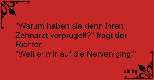 "Warum haben sie denn ihren Zahnarzt verprügelt?" fragt der Richter.