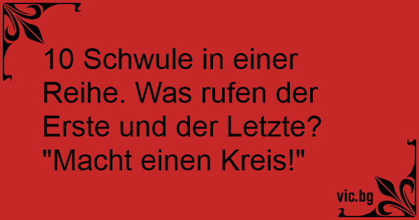10 Schwule in einer Reihe. Was rufen der Erste und der Letzte?