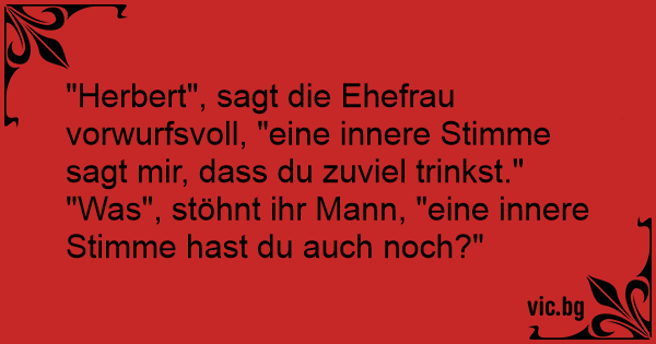 "Herbert", sagt die Ehefrau vorwurfsvoll, "eine innere Stimme sagt mir, dass du zuviel trinkst."