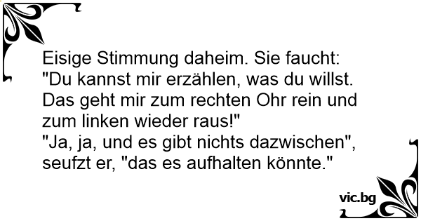 "Du kannst mir erzählen, was du willst. Das geht mir zum rechten Ohr rein und zum linken wieder raus!"