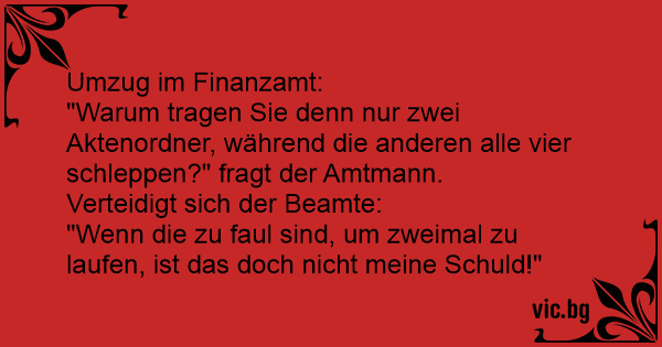 "Warum tragen Sie denn nur zwei Aktenordner, während die anderen alle vier schleppen?" fragt der Amtmann.